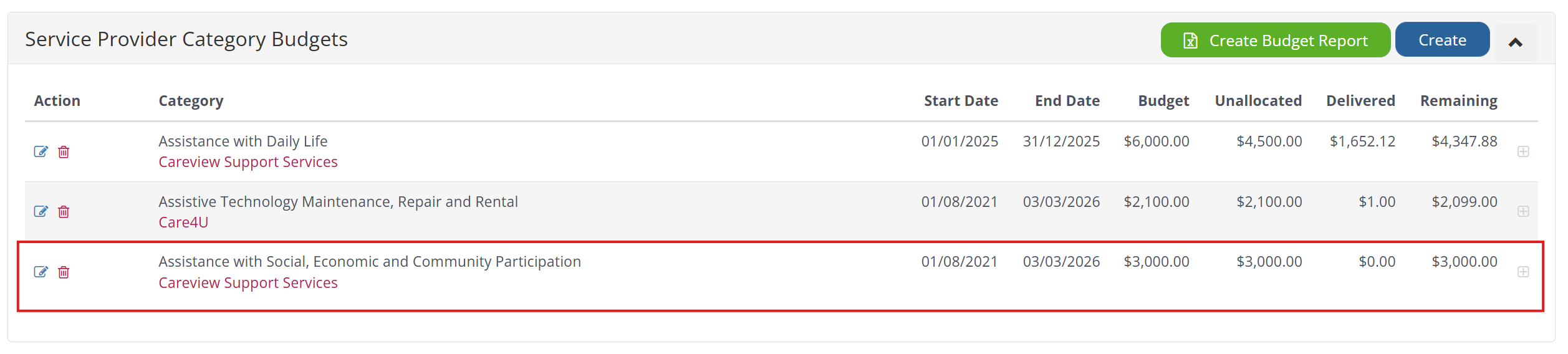 Edit a Service Provider Category Budget