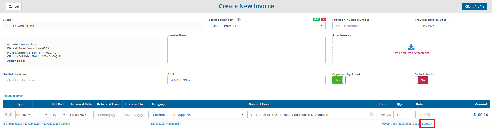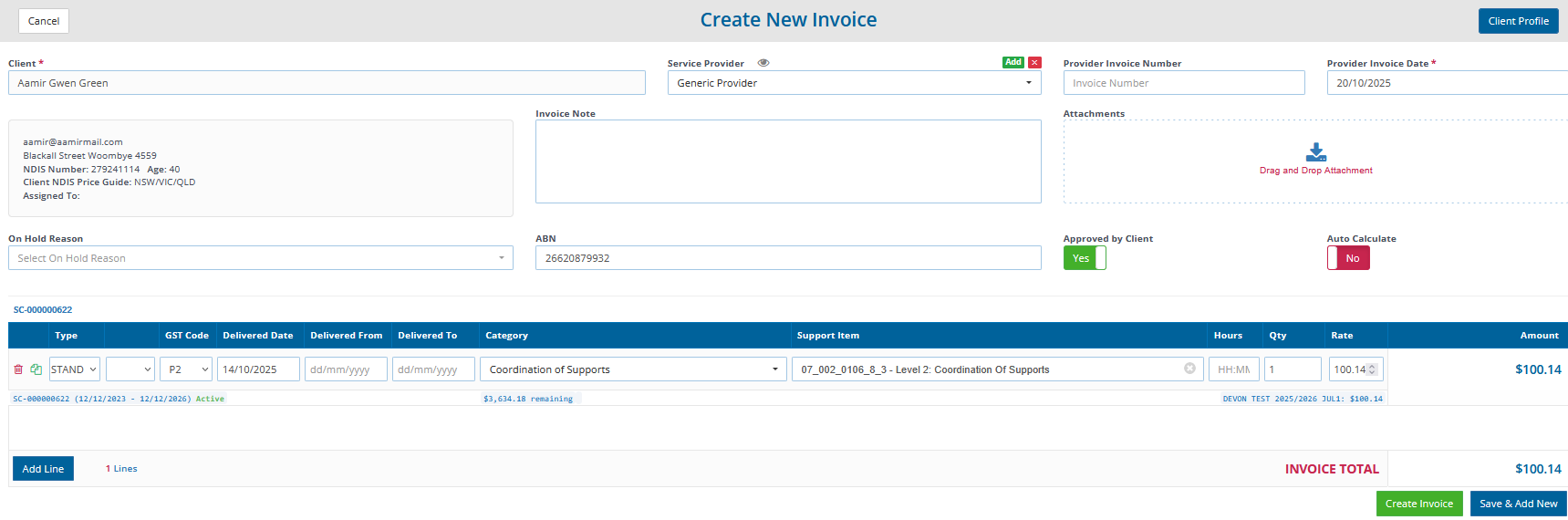 If you don’t enter an Invoice Number, Careview will set the Invoice Number based on the NDIS reference number.