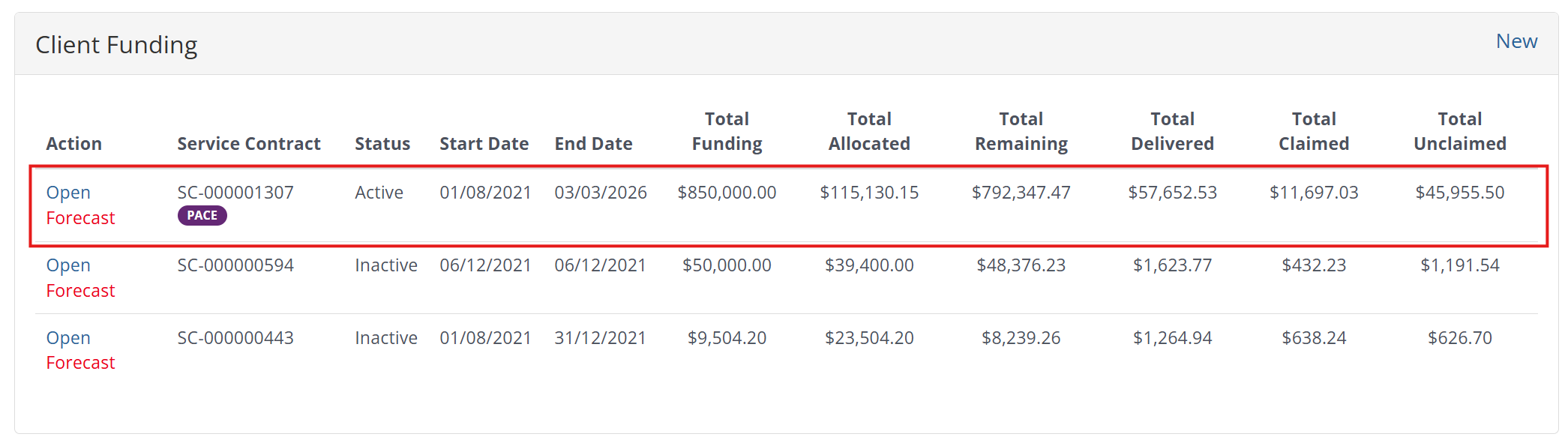 2. In the Client Funding table,