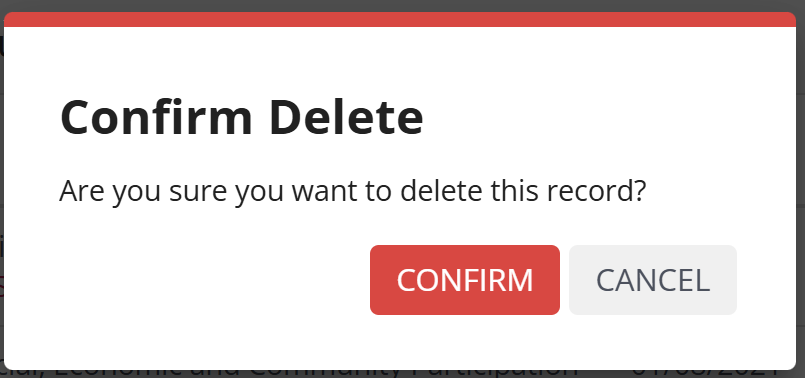 4. Click OK to confirm you wish to delete the record.