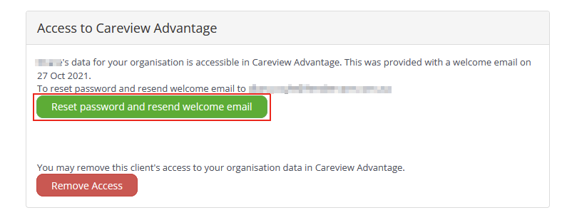 4. An email will be sent to the email address recorded on the client profile, containing login details and instructions for accessing Careview Advantage.