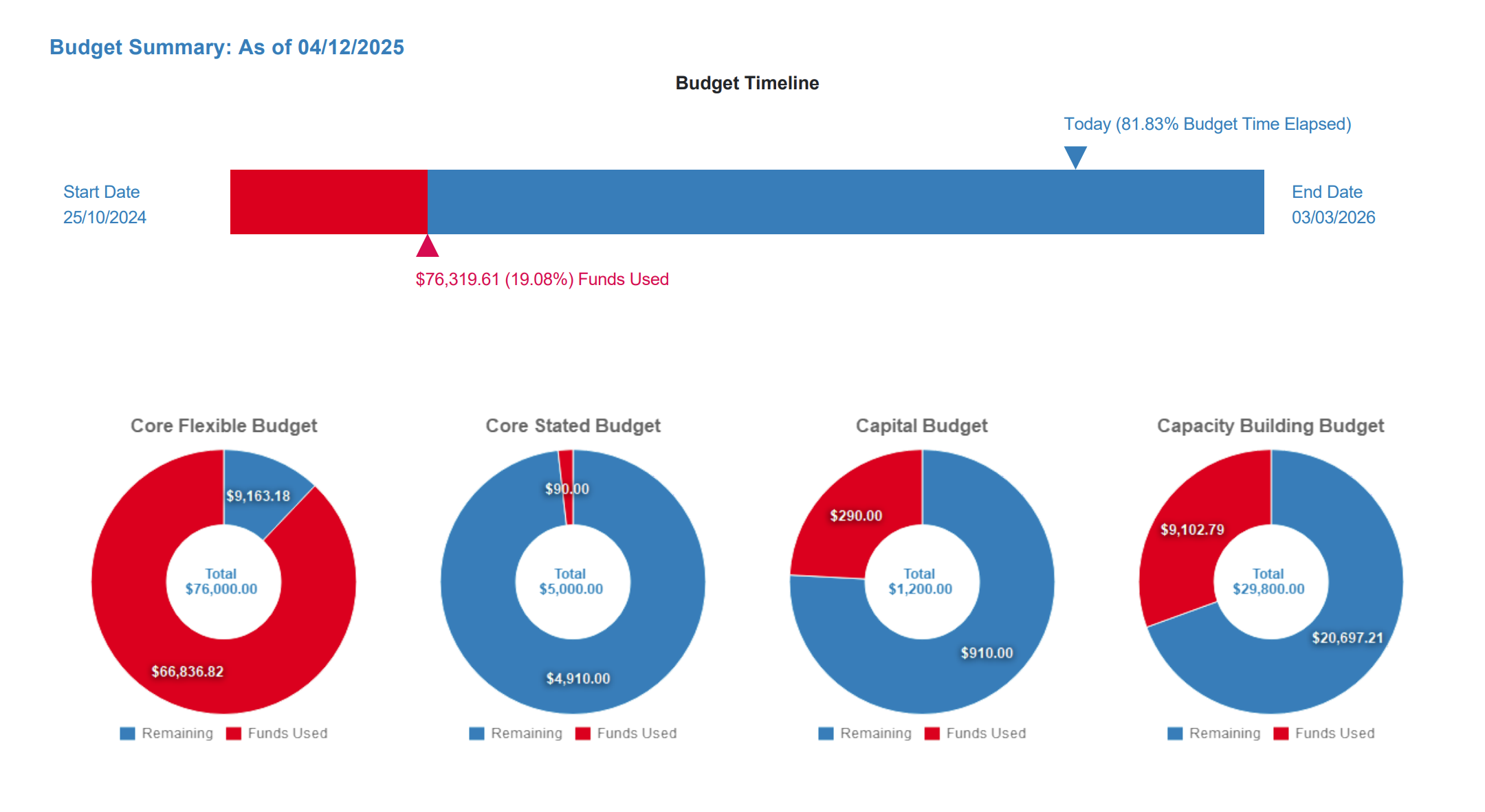 It should be noted that the opening and closing balances used in this section isn't an exact reflection of funding amount allocations, for this the Budget Utilization table should be used.