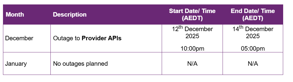 The NDIA has published the following upcoming planned outage for NDIA Provider API's.