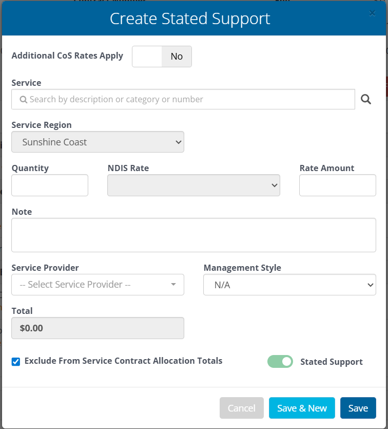 Use the following steps to create a Stated Support on a Service Contract. 1. Open the Client Profile record (click CRM in the menu, click Clients, then search for the client profile you want). 2. In the Client Funding table, click Open on the Service ...