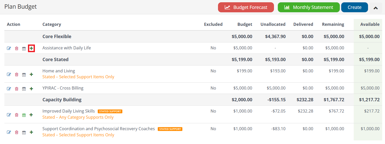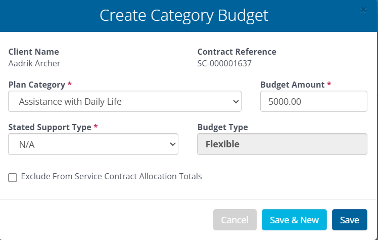 - It is important that you select the correct Stated Support Type at the time of Creating the Category Budget.