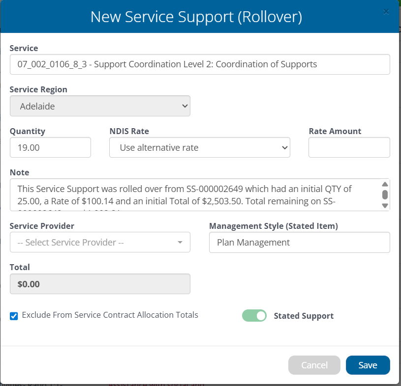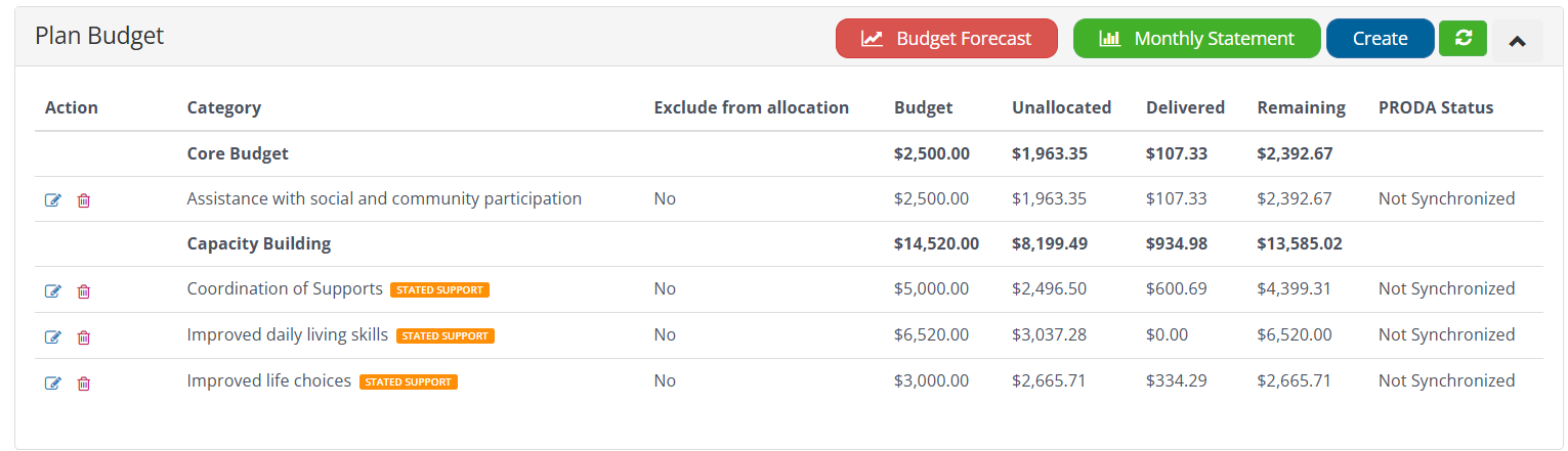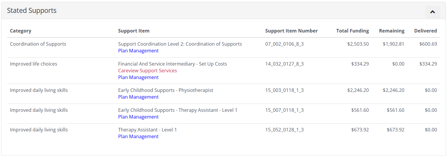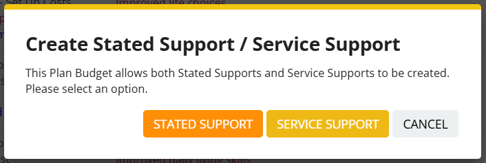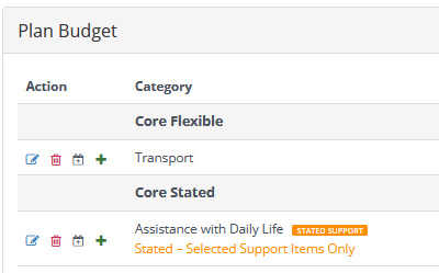 - Both Service Supports and Stated Supports are created via the Plan Budget Table.
