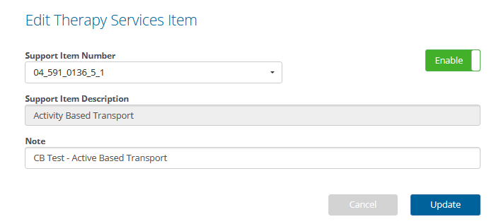 The following setting has been created to assist with managing invoices for Therapy Service Support transport that must comply with NDIA’s