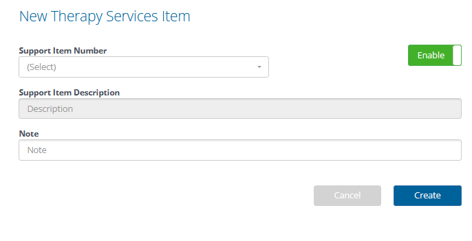 5. The New Therapy Service Item screen displays. Click to select the Support Item Number.